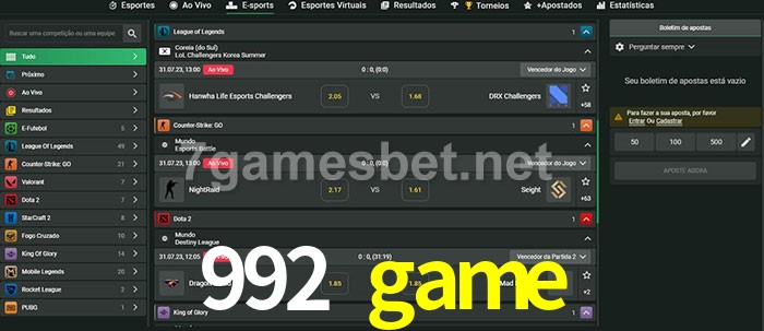 A aposta 992 game oferece aos jogadores a experiência mais conveniente de apostas em eSports!